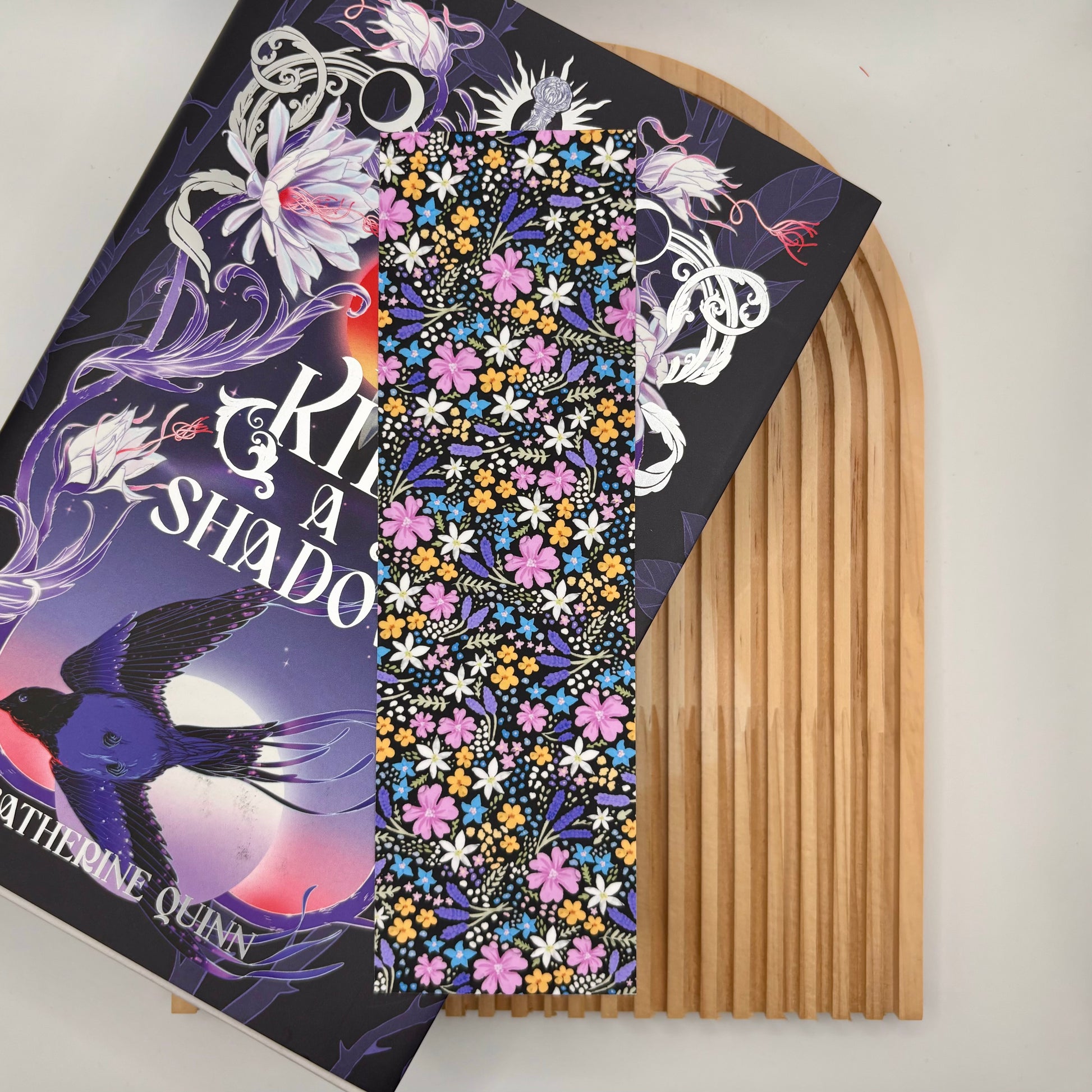 Breng kleur in je leesmoment met de Midnight Bloom boekenlegger. Dit opvallende design combineert een kleurrijk bloemenpatroon met een diepe zwarte achtergrond, waardoor elk detail echt tot leven komt.