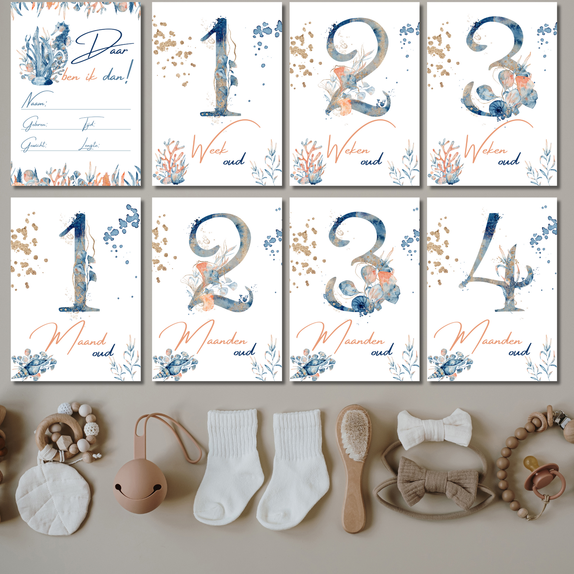 Elke kaart maakt het vastleggen van baby’s mijlpalen een magische belevenis. Perfect voor babyfoto’s, albums en als bijzonder kraamcadeau voor ouders die houden van de oceaan.